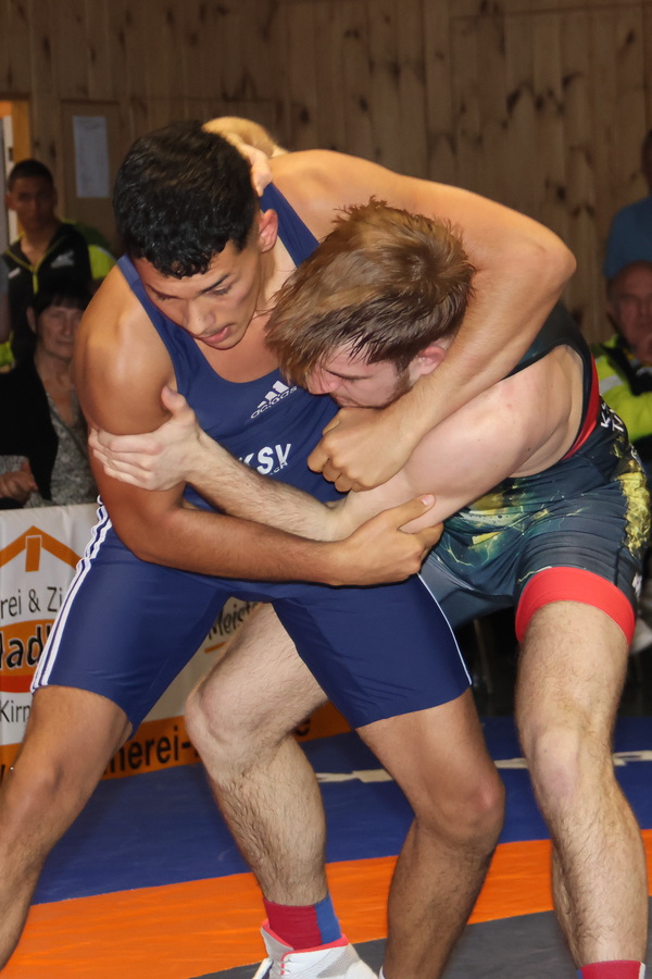 Bild: David Keller (rechts) vom KSV Taisersdorf besiegte Elias Hagenbach (KSV Haslach) in der Klasse bis 80kg überlegen mit 15:0 Punkten.